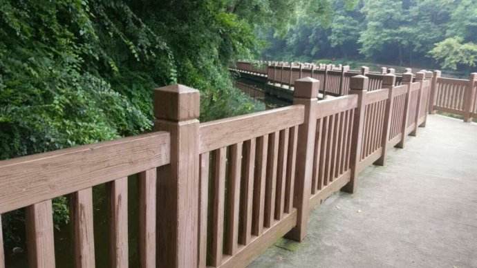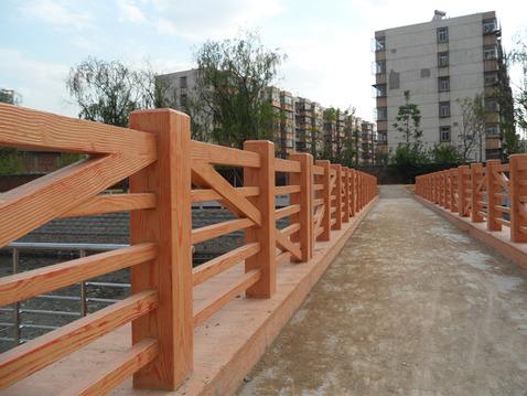 仿木护栏主要是以混凝土水泥砂石子,内置钢筋为基础材料,经过模具成型脱模、养护等系列工序制作而成的半成品。在工地现场施工安装以后,再喷漆上色,即完成了成品仿木护栏工艺。